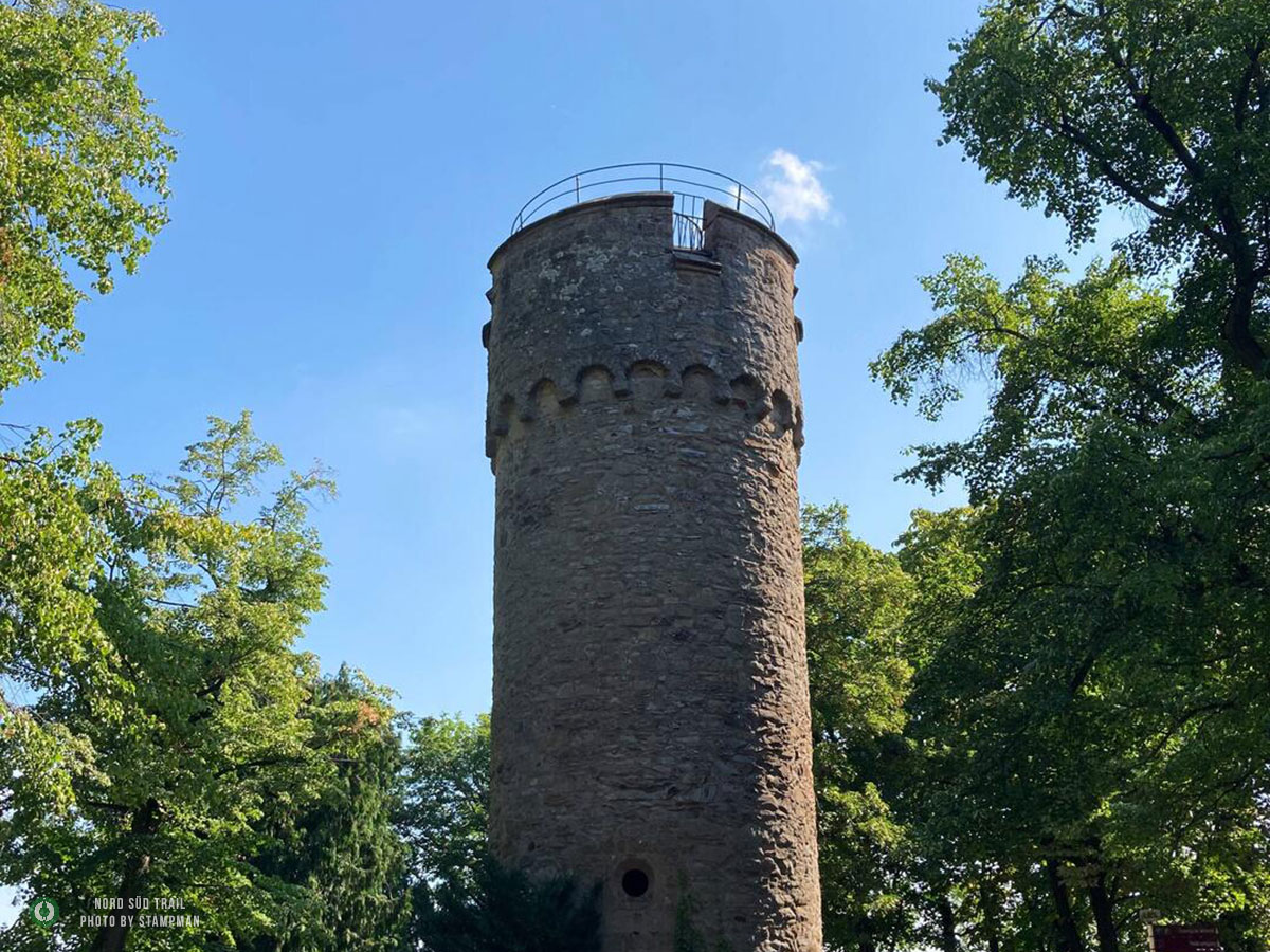 Vom Donnersberg aus geht es weiter auf dem **Westpfalz-Wanderweg („Rotes W“) **, der den Pfälzer Höhenweg mit dem Pfälzer Weinsteig verbindet. Leider ist die Markierung auf weiten Strecken kaum noch vorhanden, daher empfiehlt sich hier unbedingt die Navigation per GPS oder App. Von Dannenfels führt der Weg über breite Forstwege hinab nach Kirchheimbolanden. Kurz vor der Stadt passiert man den Wartturm, dessen Aussicht inzwischen weitgehend zugewachsen ist – ein kurzer Stopp lohnt nur bedingt. Das Stadtzentrum selbst ist jedoch sehenswert, mit netten Gassen und kleinen Cafés. Der weitere Verlauf führt zunächst entlang der Hauptstraße, später an einer Landstraße und schließlich unter der Autobahn hindurch – einer der weniger reizvollen Abschnitte. Hinter Kirchheimbolanden öffnet sich wieder die Landschaft: über sanfte Hügel, Felder und Windräder erreicht man den Wartturm vor Albisheim, der sich hervorragend für eine kleine Pause anbietet.