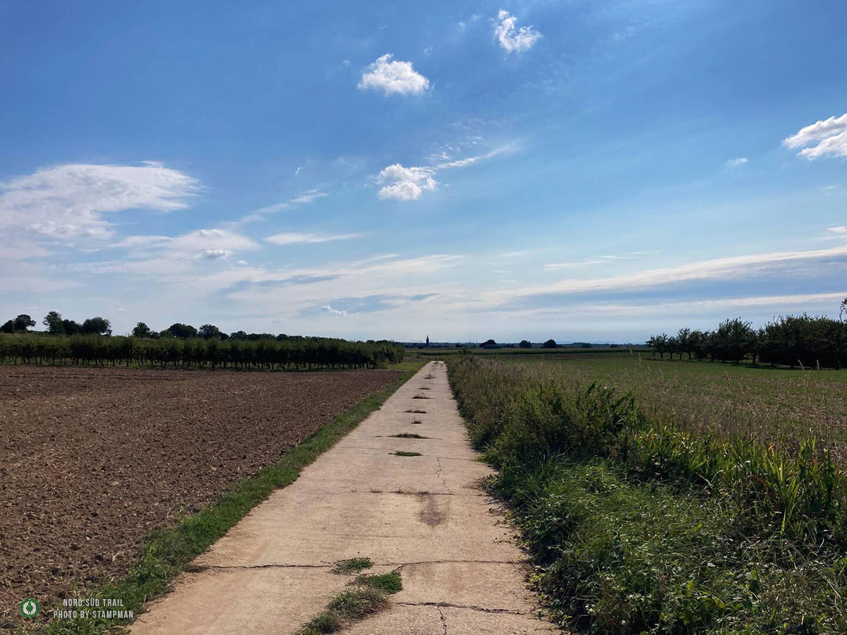 Zwischen Pfälzerwald und Schwarzwald verläuft der Saar-Rhein-Weg durch das sogenannte Oberrheinische Tiefland, ab hier sind keine nennenswerten Anstiege mehr zu erwarten. Der Startpunkt liegt am Deutschen Weintor in Schweigen-Rechtenbach. Auf asphaltierten Radwegen geht es durch weite Felder, auf denen längst nicht mehr nur Wein wächst. Mit jedem Schritt rücken die Berge im Rücken weiter in die Ferne, während sich die Landschaft öffnet und der Horizont weiter wird.