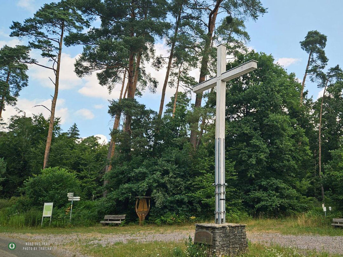 Rastmöglichkeiten sind rar, doch am Weißen Kreuz lädt eine Bank zu einer kurzen Pause ein. Nach Langenberg quert der Weg eine stark befahrene Straße, ehe man durch die letzten Waldabschnitte das Etappenziel Wörth am Rhein erreicht.
