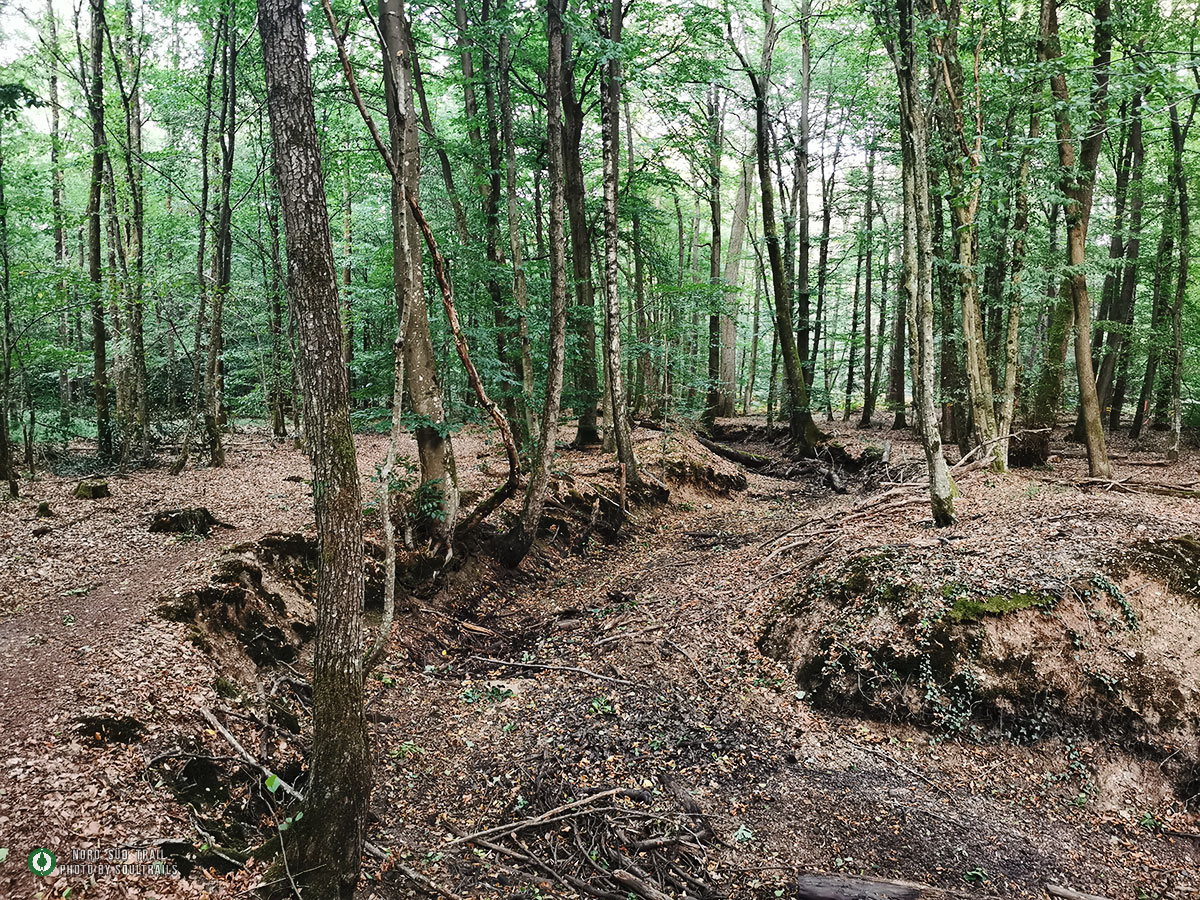 In der Ortschaft Kapsweyer bietet sich eine letzte Gelegenheit, die Vorräte aufzufüllen und die Trinkflasche am Dorfbrunnen zu füllen. Danach führt der Weg in den stillen Bienwald – zunächst auf schnurgeraden Forstwegen, dann auf schmalen, teils zugewachsenen Pfaden, die einen Hauch von Wildnis versprühen. Diese „vergessenen“ Wege haben ihren ganz eigenen Charme und zeigen, wie ruhig und unberührt der Pfälzer Süden sein kann.
